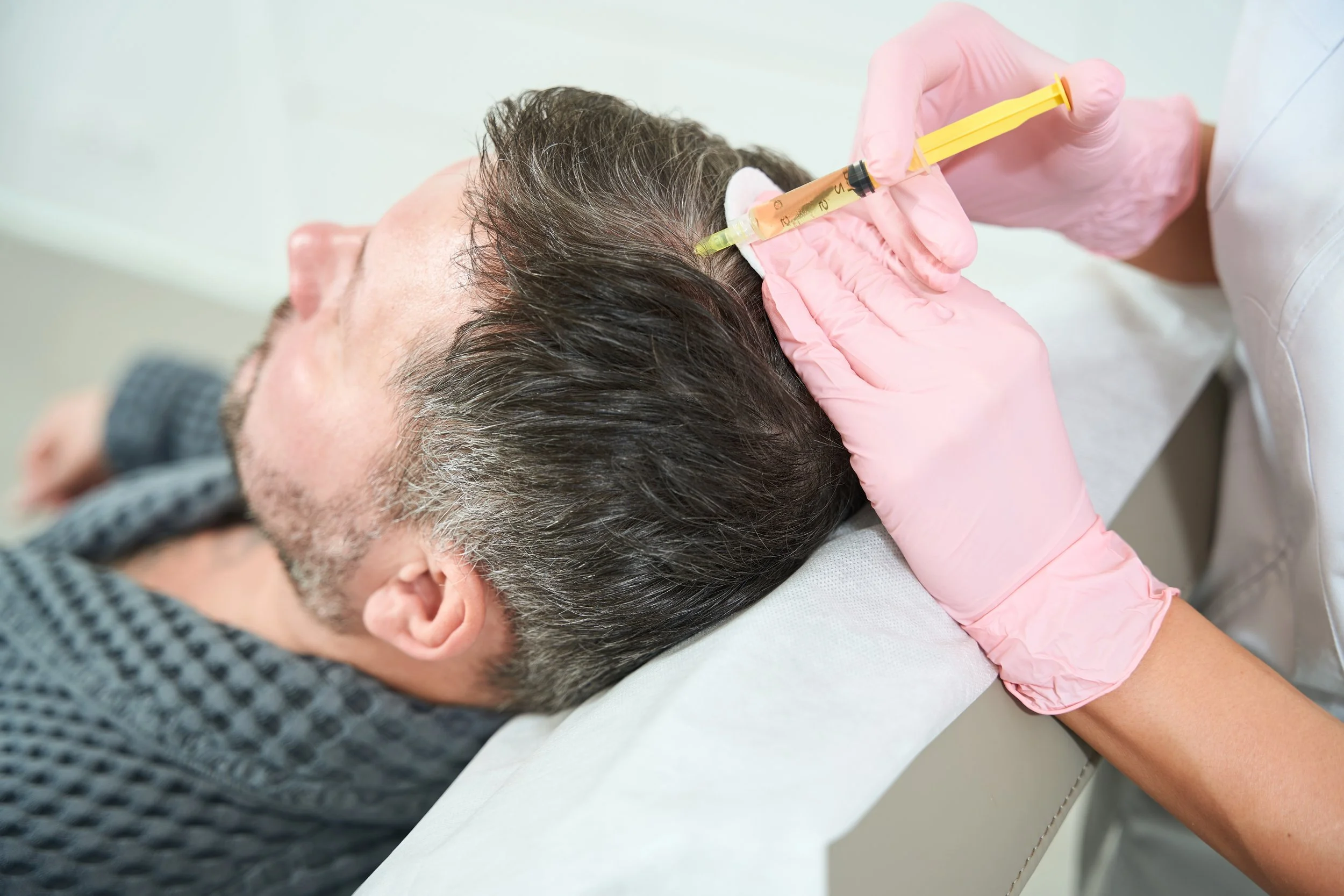 Platelet Rich Plasma (PRP) hair regrowth therapy involves injecting PRP into the scalp.